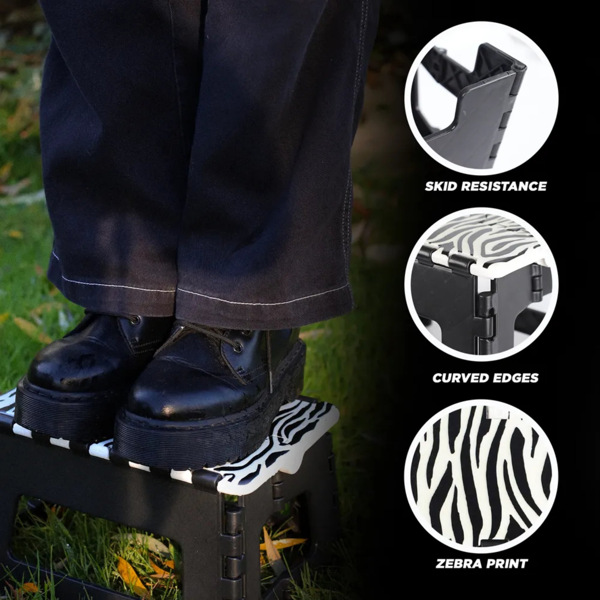 Enhance your household convenience with the DEKTON 32cm Zebra Print Step Stool, offering safety, durability, and a unique design in one compact package. Perfect for any home, office, or garage!