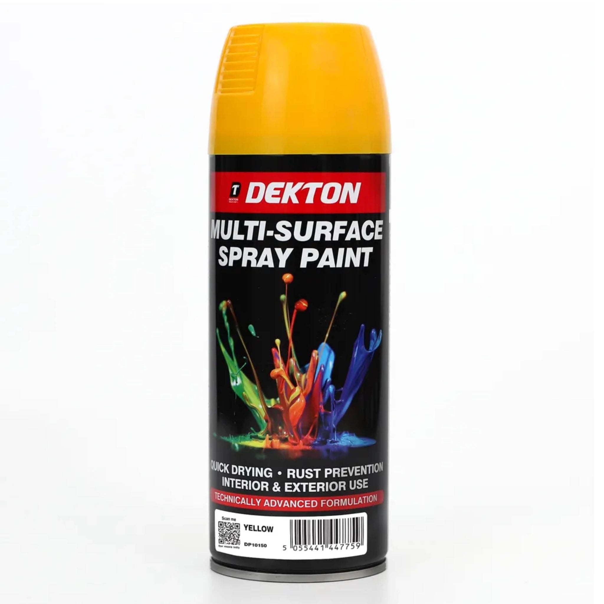 Versatile Use: Whether you're updating furniture, reviving metal fixtures, or enhancing decorative elements, DEKTON Spray Paint Yellow is your go-to solution. Its multi-purpose design makes it suitable for various surfaces, including wood, metal, plastic, and more.