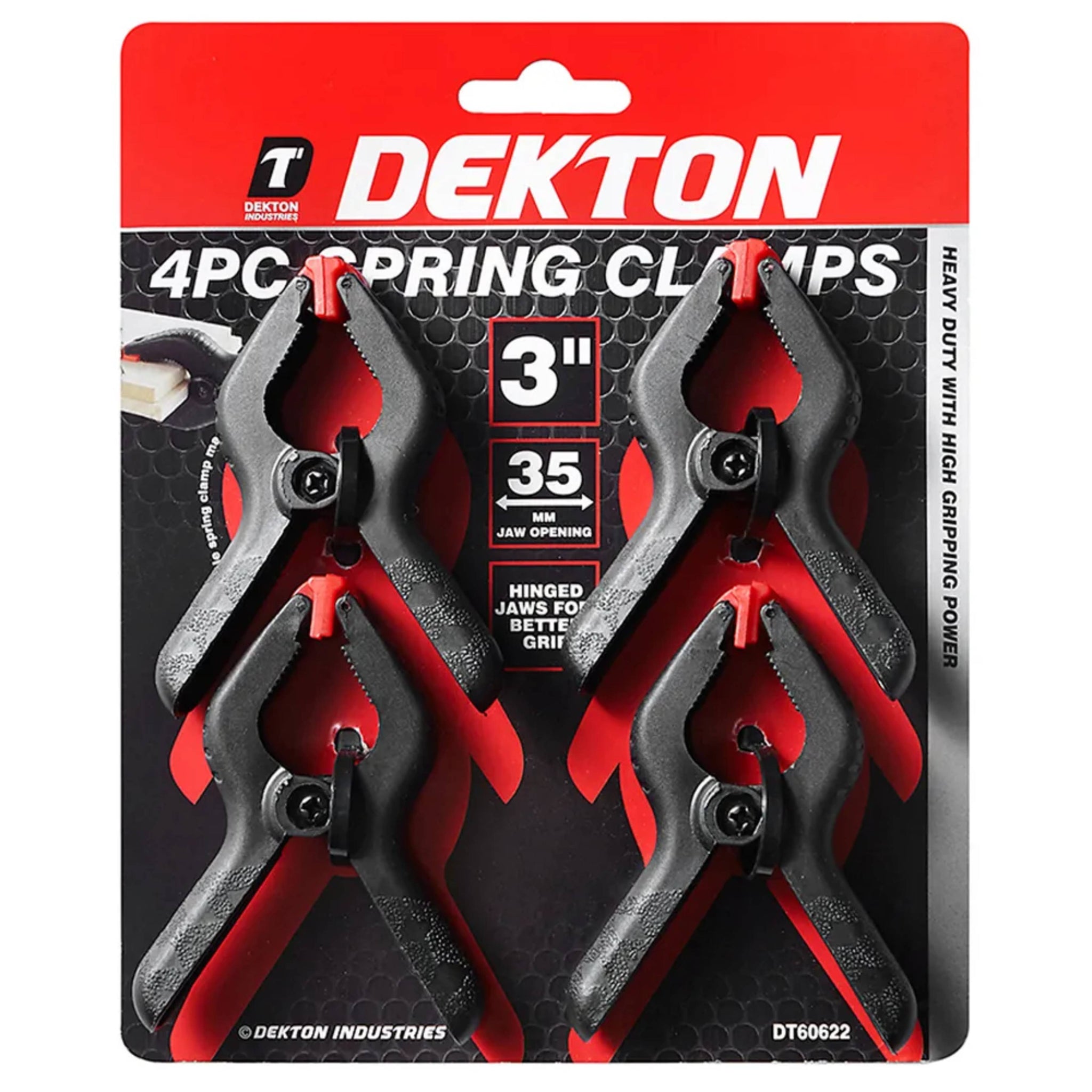 The DEKTON 4PC 3" Spring Clamps are your go-to clamping solution for various projects, from woodworking to crafting. Designed for secure and versatile clamping, these 3-inch spring clamps provide ease of use and reliability.