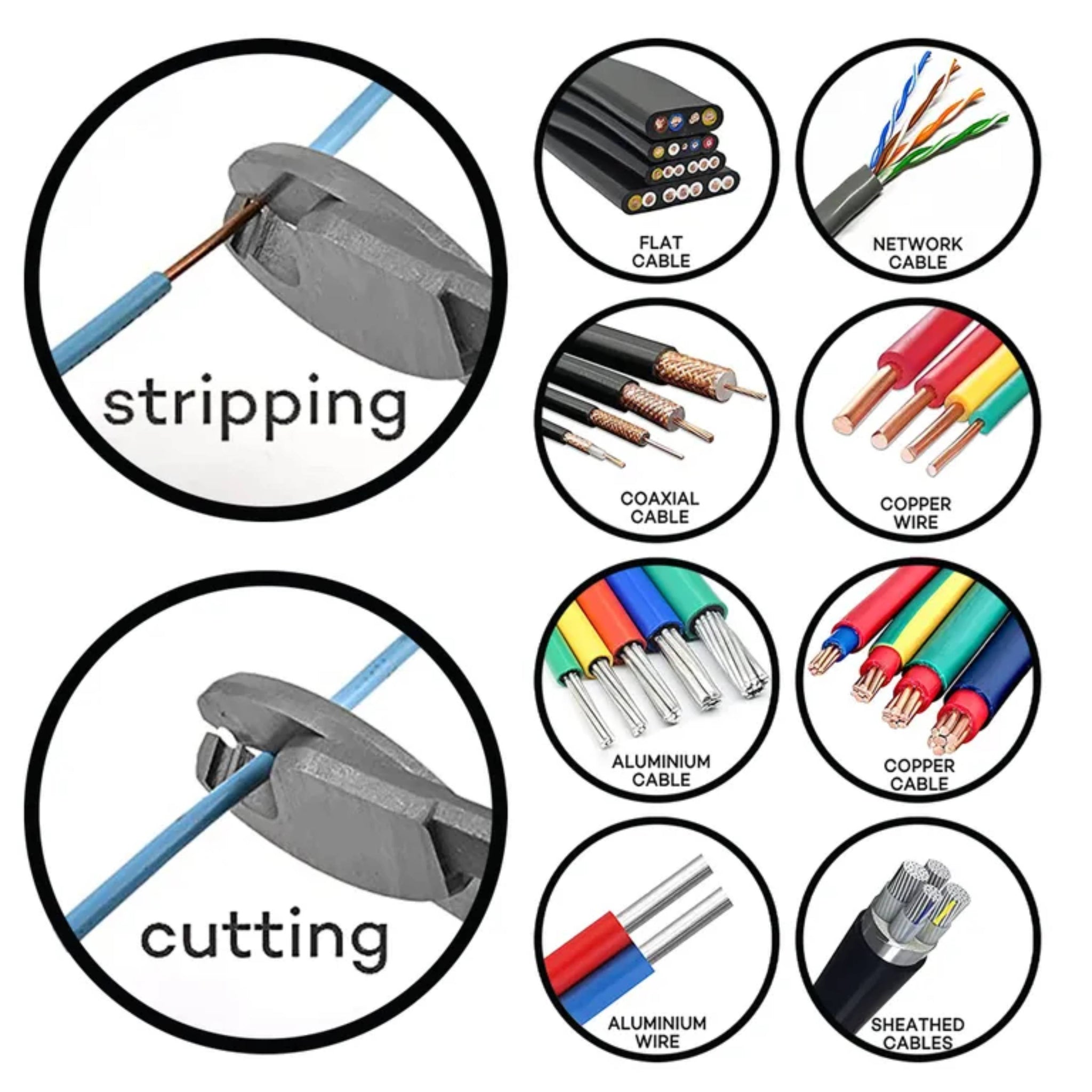 Suitable for Multiple Cables: Whether you're working with copper or aluminium cables, these pliers are up to the task. They can handle multiple cables with a maximum diameter of 6mm, making them ideal for a wide range of projects.
