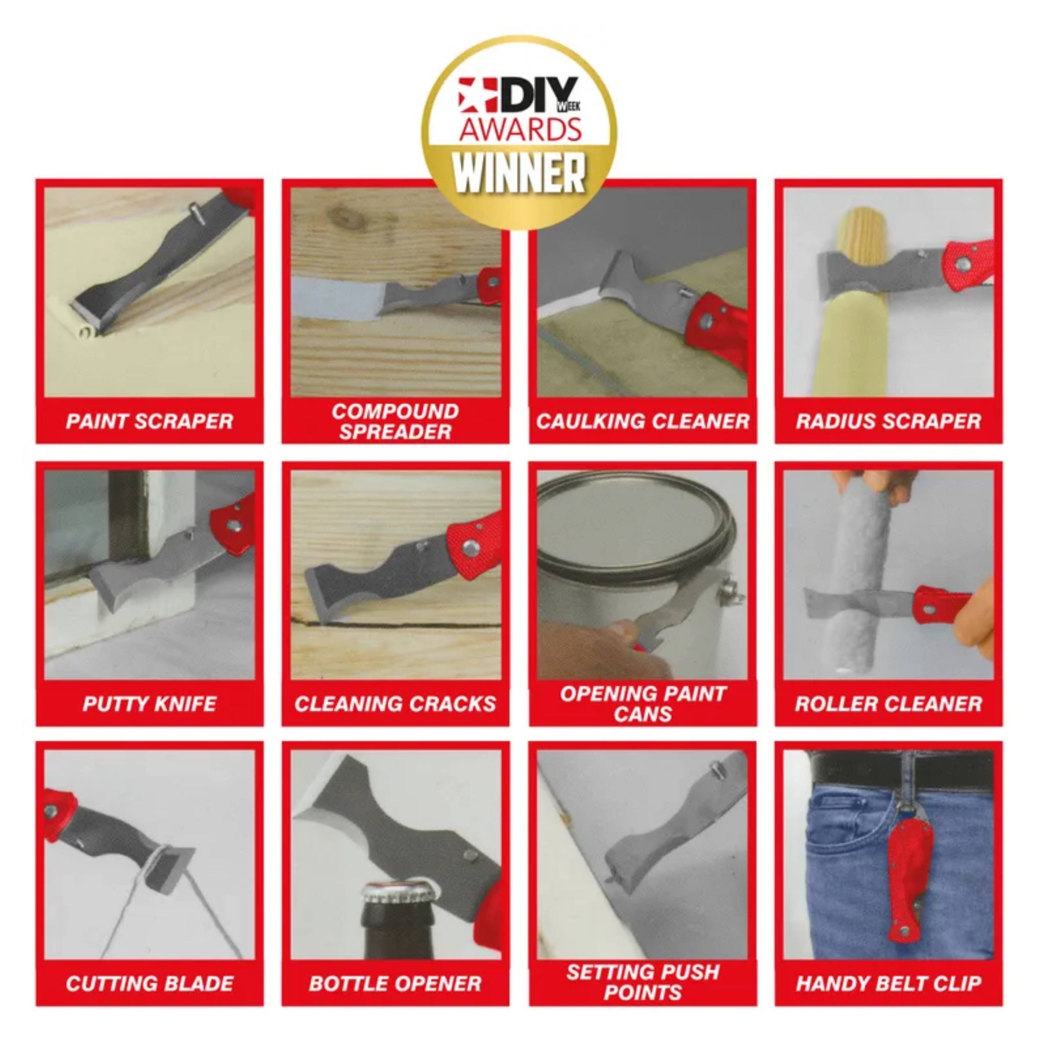 Versatile Functionality: This folding knife is ideal for scraping paint, spreading compound, cleaning caulk, and much more. Its multifunctional design allows it to act as a cutting blade, bottle opener, putty knife, and roller cleaner, catering to a variety of needs.