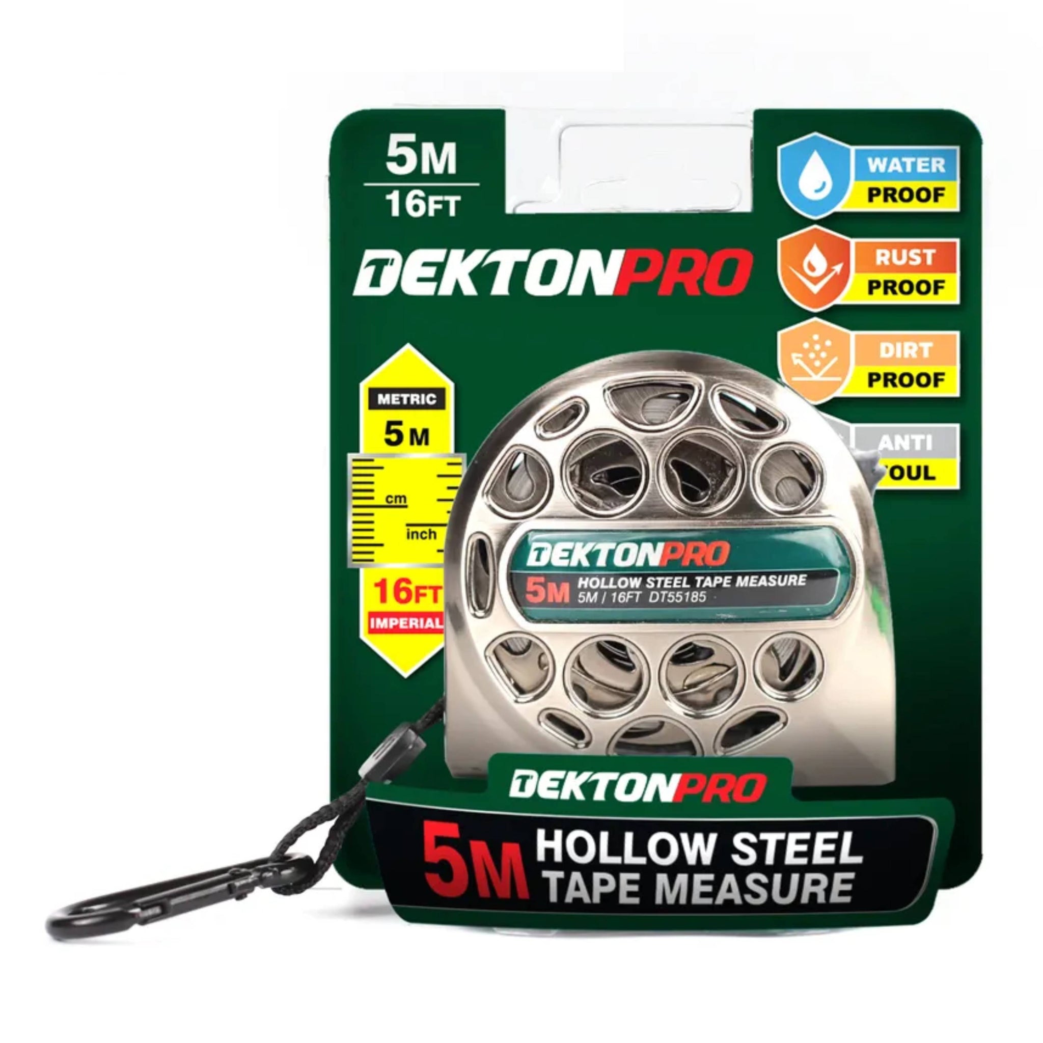 Enhance your measuring precision and convenience with the DEKTON Hollow Stainless Steel Tape Measure. Built for durability and designed with user-friendly features, this tape measure is an essential tool for any project, big or small. Experience the quality and reliability of DEKTON products today!