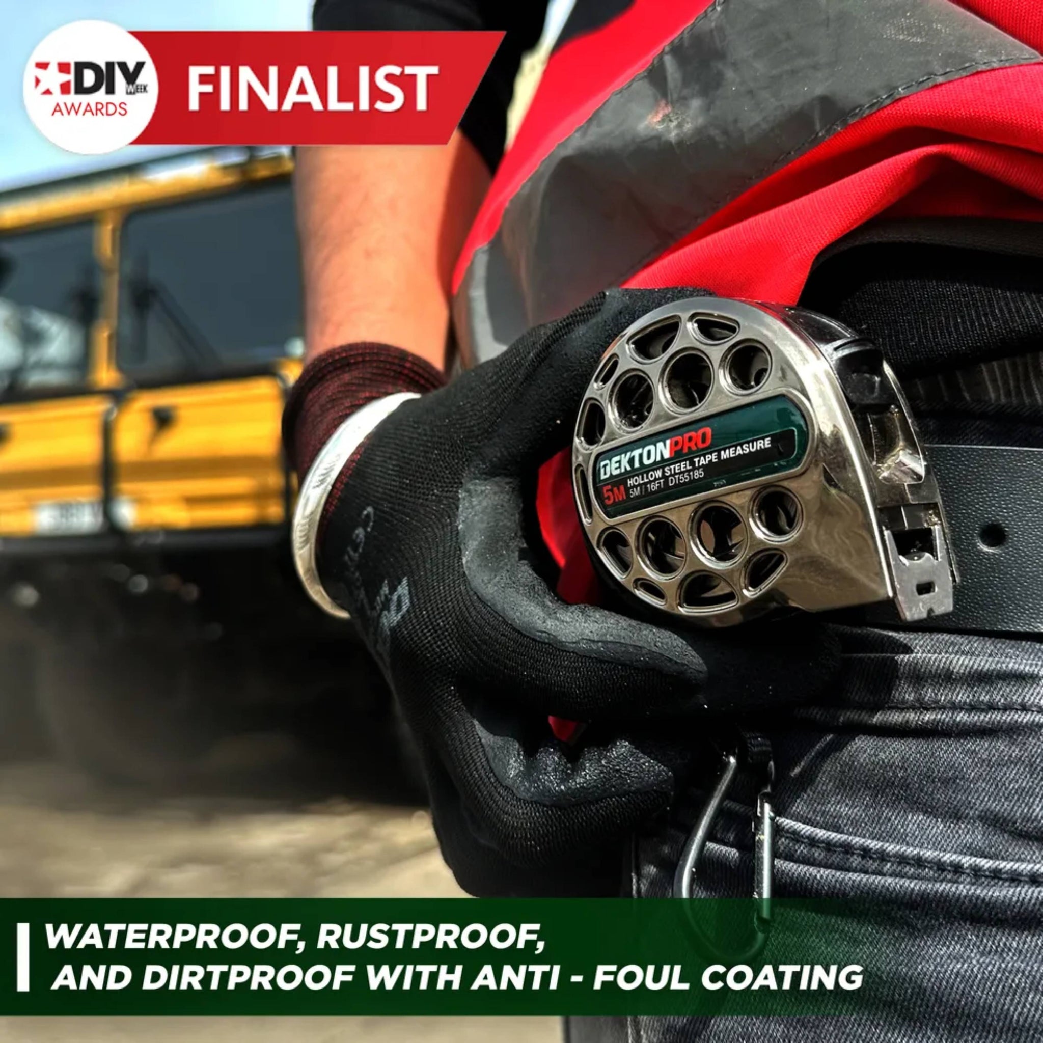 Introducing the DEKTON Hollow Stainless Steel Tape Measure, a durable and versatile measuring tool designed for precision and convenience in various environments. With its robust construction and practical features, this tape measure is perfect for both professional tradespeople and DIY enthusiasts.