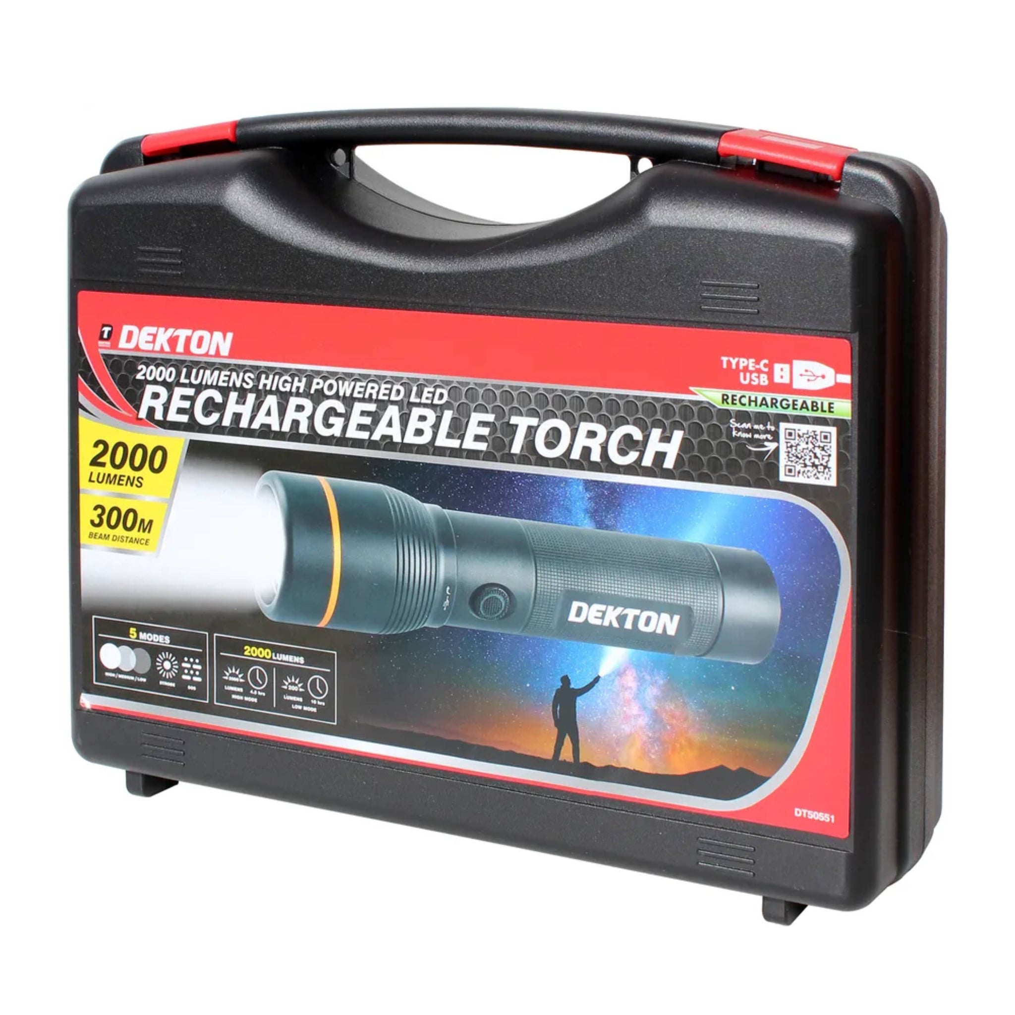 Whether you're camping, hiking, working in low-light environments, or preparing for emergencies, the DEKTON PRO Light XP 2000 Rechargeable Torch combines brightness, durability, and convenience for a dependable lighting solution.
