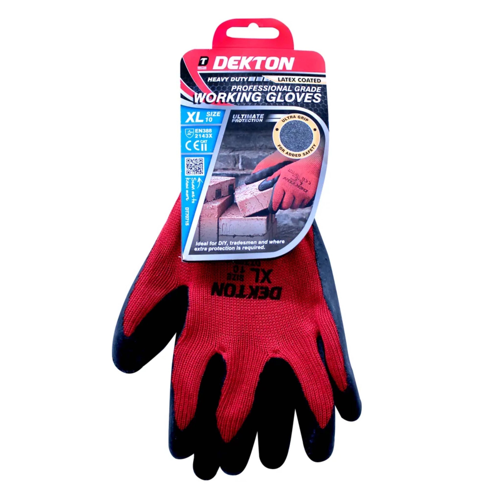 Introducing the DEKTON Size 10/XL Heavy Duty Professional Grade Latex Coated Working Gloves, crafted to provide ultimate protection and reliability in demanding work environments. These gloves are ideal for DIY enthusiasts, tradesmen, and any task requiring extra protection.